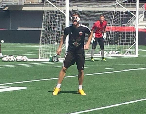 Ottawa Fury forward Oliver Minatel suffered a boot to the face last weekend against Minnesota United that left him bloodied and swollen. This week Oliver returns to play wearing an impressive face-mask as his nose continues to heal.