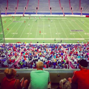 Our inaugural game was against Memphis City. We sort of planned that we would do a dry run against each other to work out the kinks on the operations side before the conference season started. I think every news outlet showed up for the game and they wanted interviews on the field, so I got caught up in that and had no idea what our pregame tailgate looked like outside. I also had no clue what kind of crowd to expect, so I took advantage of our league sponsorship with Staples and had our 2500 paper tickets printed on business cards. I recruited family members to help manage the ticket booth, and I got a text message from my mom while talking to the press that we were running out of paper tickets. The actual attendance for the first game is unknown because we had to start recycling the tickets. Good problem to have I guess. I had my nephew standing at the gate and once the attendants collected a decent amount he would run them back to the ticket booth to be resold. Based on the 2500 paper tickets and season tickets sold, I’m comfortable saying that we had no less than 4,000 that first game. I also took a photo of the crowd from the other side of the stadium and compared it to the capacity numbers from each section of the stadium and 4000 looks to be pretty close.