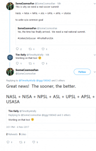 Once this pact is solidified by the clubs and leagues, plus the new association and the promotion and relegation system are formed at this summit, then as a unit the association and its member representatives, with the actual plan in hand, can meet with USSF during the same or following week. The association and its clubs and leagues can be approved by USSF, and it can launch in 2018. Eventually, CONCACAF Champions League (CCL) berths can be pursued.