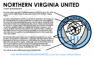 The Virginia Cavalry were planned to bring professional soccer to Loudoun County in 2014, but plans for a new ballpark to be shared with an Atlantic League baseball team derailed. D.C. United is reportedly eyeing up Loudoun County for its MLS-2 team in USL. However, residents of the area do not have to wait until for DC-2 to enjoy a high level of soccer. Leesburg-based Northern Virginia United will begin play in the National Premier Soccer League this year, will plans to offer a supporter-owned structure that will make the club something area residents can truly call their own. Their crest reflects the area’s aviation history and status as an Internet hub.