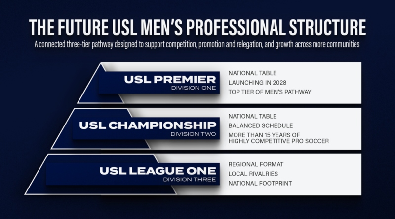 USL Premier is finally official. USL’s foray into the Division 1 men’s pro league business follows the English-inspired naming convention of the USL Championship and USL League One, as expected. USL Premier will act as the top level in a three-tier pyramid with promotion and relegation allowing clubs to move up and down on sporting merit.